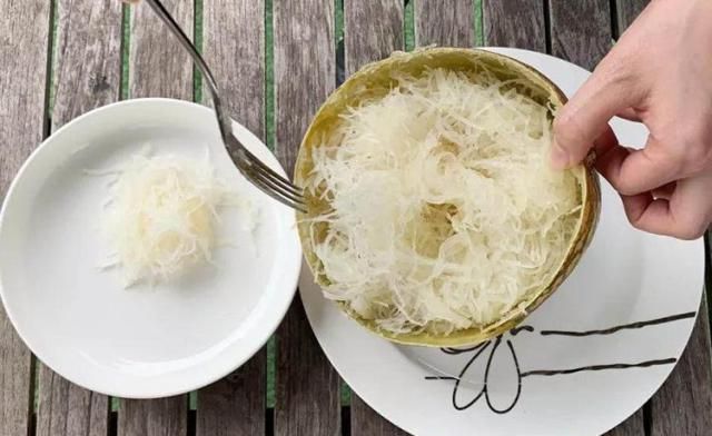 而金丝瓜的食用方法也很简单,直接切开生食都可以,不过煮熟了吃味道更好,而且煮熟了以后犹如粉丝一般,味道鲜美,爽脆可口。