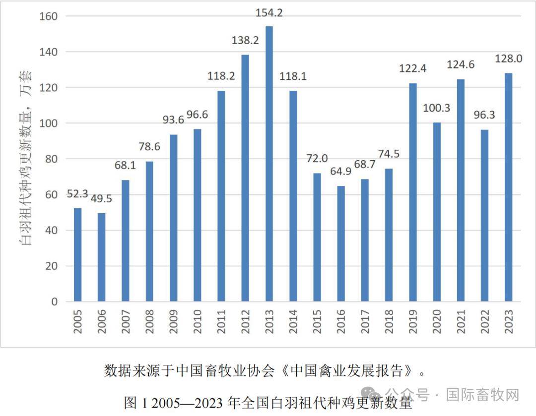 中国畜牧业协会最新数据显示,2023年我国白羽肉鸡祖代更新数量为127.99万套,较2022年增加32.85%。达到近5年的新高。