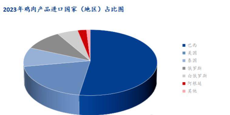 从鸡肉产品进口国占比分布来看,全年进口来源国依旧以巴西、美国、俄罗斯、泰国、白俄罗斯5个国家为主体,进口量分别为67.93万吨万吨、25.40万吨、12.78万吨、12.09万吨、和6.87万吨。